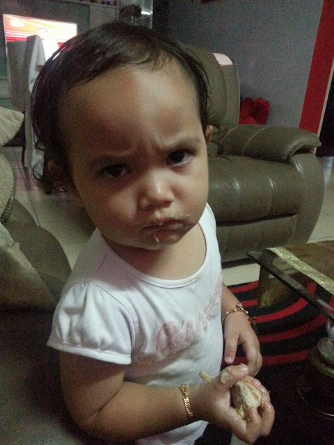 Aku ade suarakan pd along tuk jamah nasi dulu buat alas perut sementara tunggu si selfish.. tp die xnk.. katenye takut nnt die da kenyang.. ok.. aku layan jelah.. tup2 die buka mulut terus minta mkn mee (maggi la tu).. dlm keadaan die tgh demam.. aku plak mmg nk die mkn mlm sbb lepas tu nk bg mkn ubat.. tp semlm ubat pun die xnk.. siapa tau klu sebenarnye hati die merajuk..